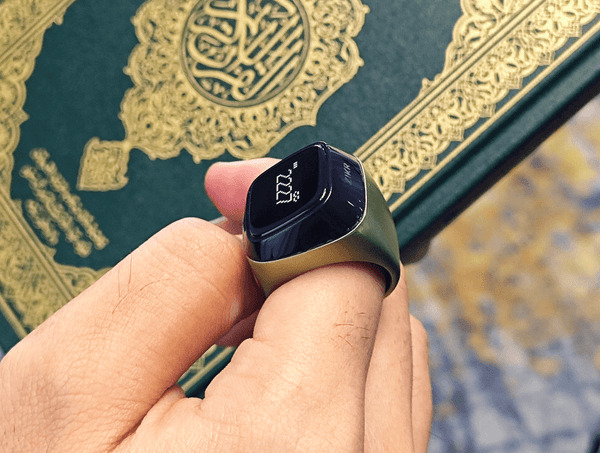 Zikr M02 Pro has a built-in 0.42″ OLED display showing the real time, tasbih counts and prayer times.