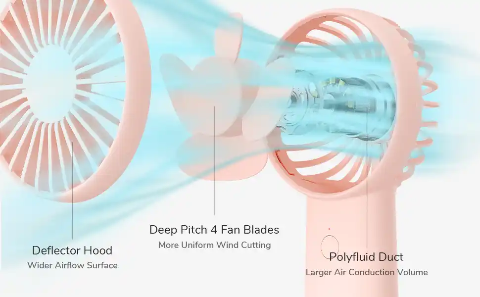 • Powerful & Cool: JISULIFE portable fan design 4 turbo wide fan blades plus innovative inflow wind cover, can be faster and larger area of cutting air, such as natural wind gently cool, compared to other handheld fans, innovative fan blade wind power to improve 90%, the fastest motor rotation speed is up to 4400RPM.